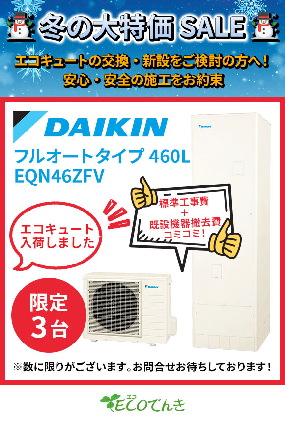エコキュートからのお買い換え通常790,000円のところ実質価格690,000円(税込)電気温水器からのお取り替えは補助金40,000円プラス※リモコン・脚カバー付き